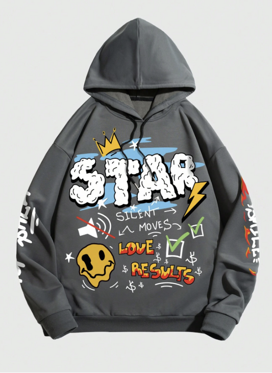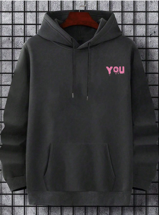 Men's Character Letter Print Drawstring Hooded Sweatshirt