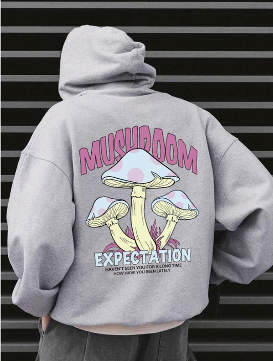 Manfinity Men Mushroom & Slogan Graphic Drop Shoulder Drawstring Hoodie