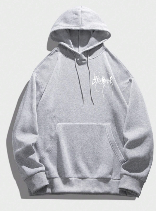 Men Spider Graphic Drop Shoulder Drawstring Hoodie