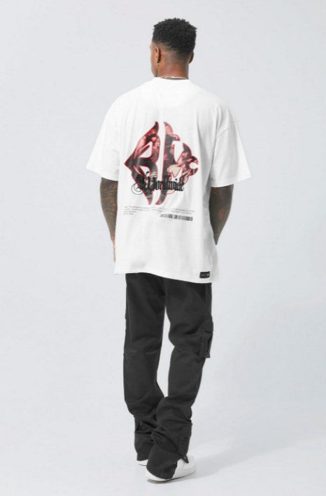 OVERSIZED EXTENDED NECK SMOKE GRAPHIC T-SHIRT