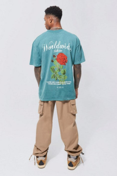 OVERSIZED OVERDYE WORLDWIDE FLORAL GRAPHIC T-SHIRT