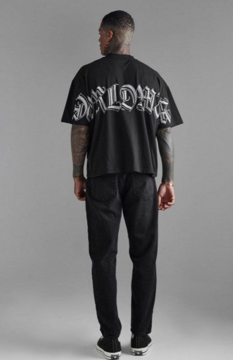 OVERSIZED EXTENDED NECK GRAPHIC T-SHIRT