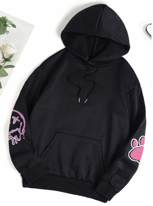 Plus Cartoon Graphic Kangaroo Pocket Drawstring Thermal Hoodie