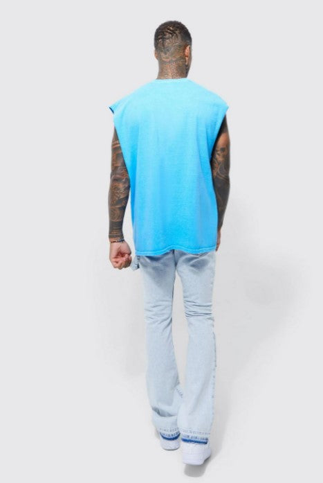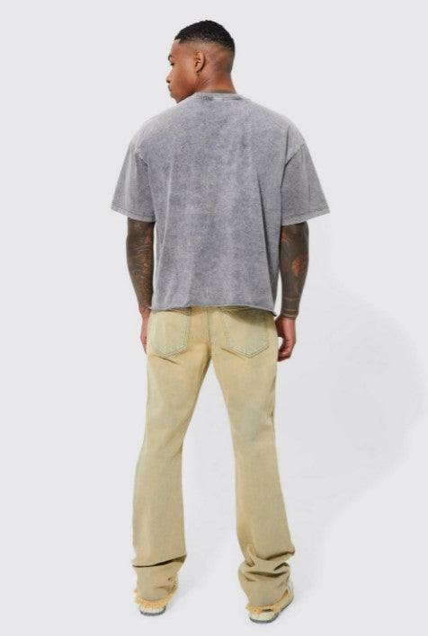 SLIM FLARE DISTRESSED PANEL JEANS